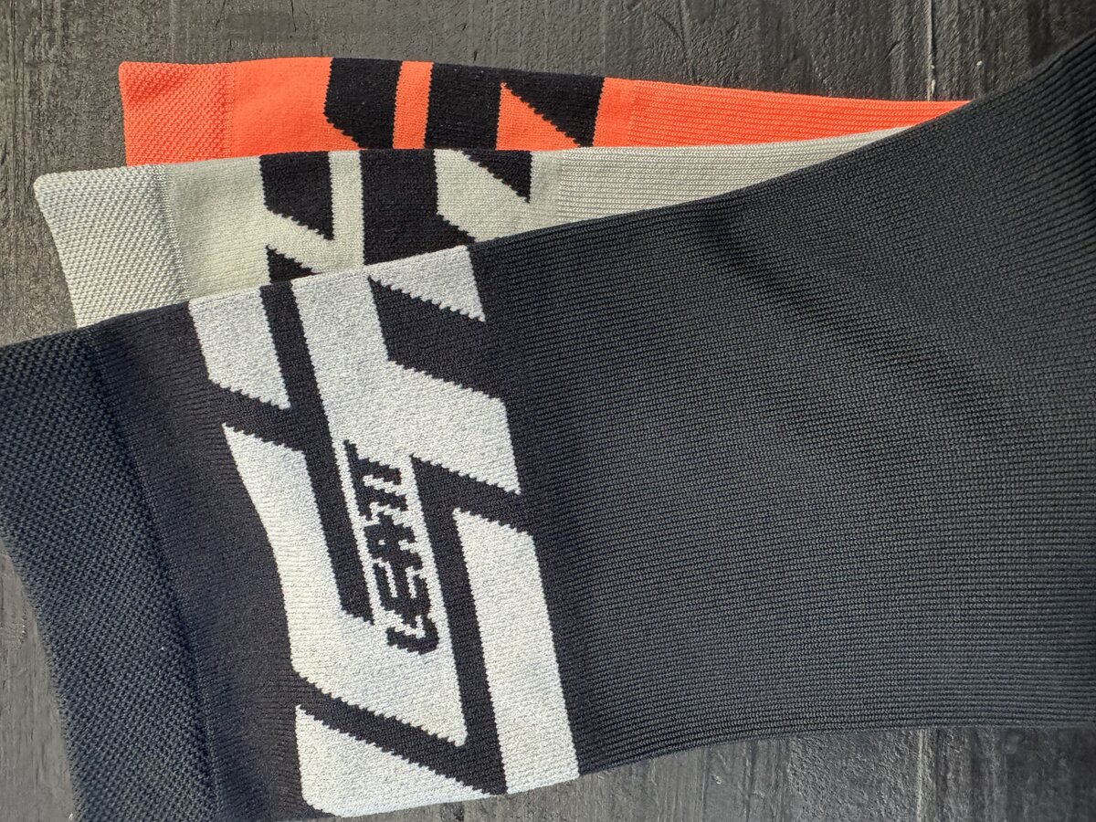 3D Knitted long socks with reinforced ankle, heel and instep sections.